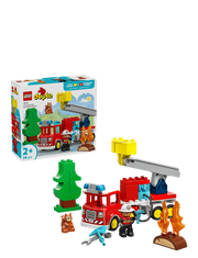 The LEGO DUPLO fire engine model is packed with fun features to spark creative rescue stories. It has a hinged ladder and a transparent LEGO DUPLO brick water tank. Budding firefighters can pretend to attach the hose to the tank to put out the fire. Toddlers also develop fine motor skills, transforming the fire engine so that its trailer becomes articulated, making it easier to drive around corners. Set contains 28 pieces.