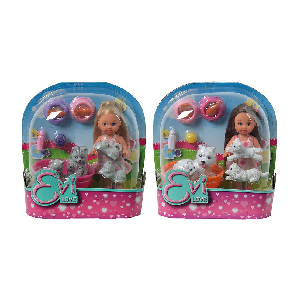 Evi with her animal friends, 4 pets with accessories per set, 8 pcs