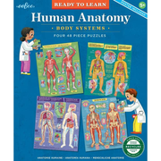eeBoo Ready to Learn – Human Anatomy: Exploring the Wonders Within! Product Description: Designed for children aged 4 and up, this educational set includes four detailed 48-piece puzzles that vividly illustrate the body's major systems: muscular, respiratory, circulatory, digestive, skeletal, reproductive, and nervous. Each puzzle provides a clear and engaging way for children to learn about the functions and importance of different bodily systems. Features: Comprehensive Learning Tool: Covers a broad range of anatomical details across four puzzles, each dedicated to different body systems. Educational Rhymes: Includes poetic descriptions to aid memory and understanding of how bodily systems work together. Interactive Learning Experience: Engages children in hands-on learning that promotes cognitive development and scientific curiosity. Quality and Detailed Imagery: Vibrant and accurate illustrations help visualise and differentiate the various systems of the human body.