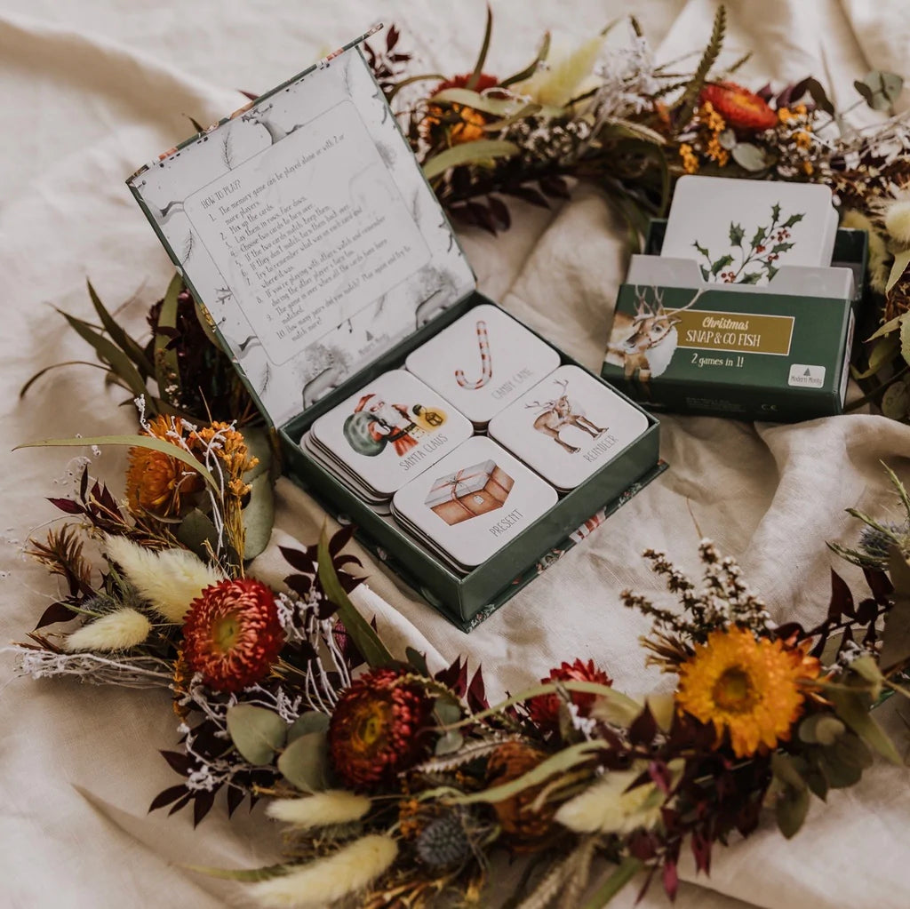 Combine our luxe Christmas Memory Card Game and Christmas Snap & Go Fish both packaged in the most luxurious, magnetic-close boxes. This set will be sure to be a perfect little bundle for Christmas loving kids. They are such a great addition to your Christmas Eve Box or stocking too!