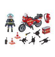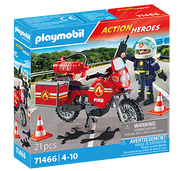 With the fantastic PLAYMOBIL set Motorcycle & Oil Spill Incident, every child becomes a rescue hero! The firefighter navigates through traffic jams on his agile motorcycle, securing the accident scene with pylons. The movable handlebars and stand provide realistic play, while the figure sits securely on the motorcycle. The fire extinguisher and luggage box can be attached to the side behind the seat and carried when detached. Removable glove attachments, a movable visor helmet, and a chest protector allow for detailed role-playing. This set not only stimulates imagination but also enhances motor skills and a sense of responsibility – the perfect gift for aspiring young lifesavers aged 4 and up!