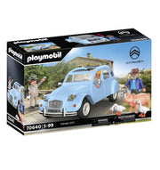 The iconic Citroën 2CV! Equipped with figures and accessories for a trip through the country. With sticker sheet and interchangeable headlights to customize your Citroën 2CV.