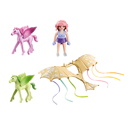 • Charmingly designed princess toy with a PLAYMOBIL figure, two Pegasus foals, a flying glider and other great extras for creative role play