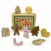 Add a plate of these gorgeous wooden cookies to any pretend play tea party. The assorted cookies feature a bell, a gift, a candy stick, a Christmas tree, a snowflake, a heart, a gingerbread man, a gingerbread woman and a snowman. The wooden biscuits are nicely stored in a wooden box with a sliding lid.