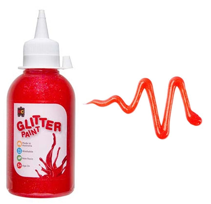 Australian made dazzling Glitter Paints let kids create brilliant artworks that sparkle! Each bottle of vibrant coloured paint, contains tons of sparkling coloured glitter to add a dazzling effect to any craft project. Made from the highest quality ingredients, the glitter and paint are both the same colour for a highly saturated finish. This range consists of 11 dazzling colours, packaged in environmentally friendly PET bottles.