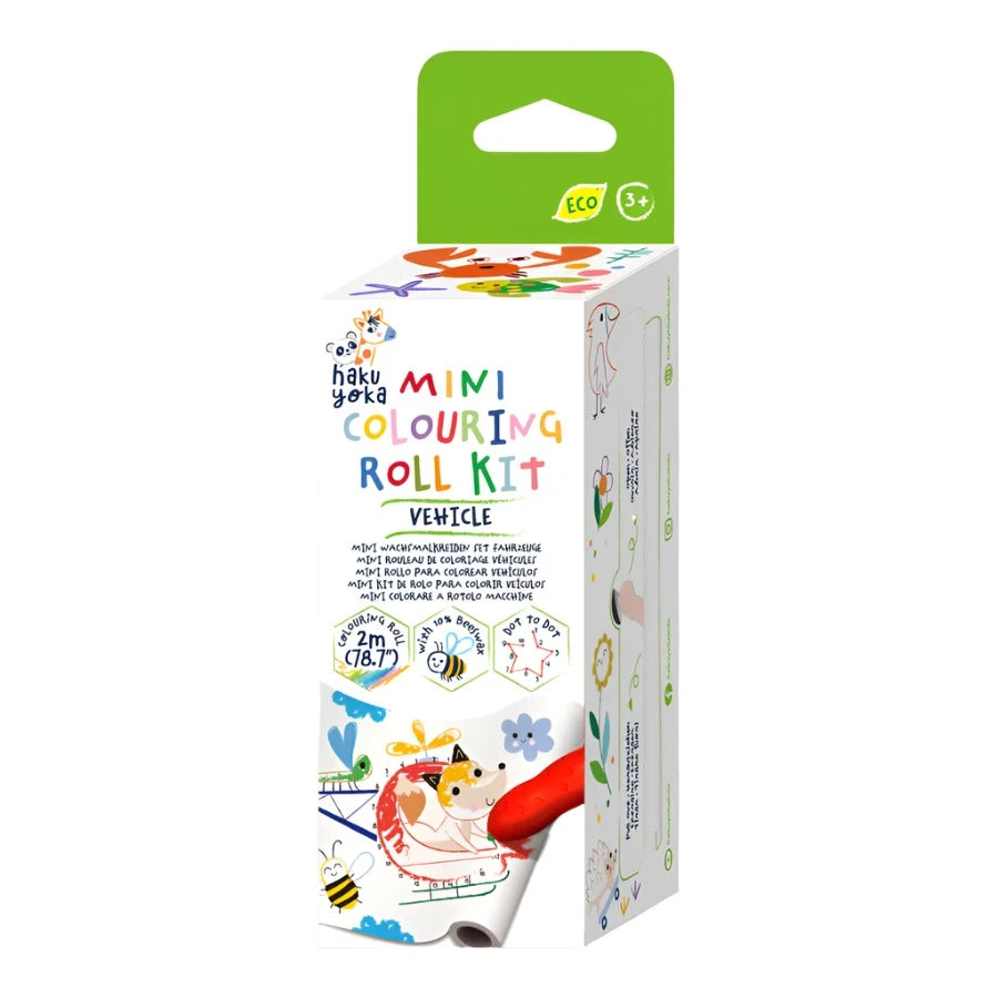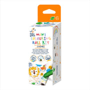 Haku Yoka Colouring Roll Kit includes a 2 metre long roll colouring sheet, and 4 pieces of Hi-Pea crayons. Each design has different concept. The Safari Kit concept is to colour and decorate with stickers. An easy and fun way to roll it out from box, and kids can tear the roll off every 20cm helped by the pre-punched dotted line, Colouring in creative way, sharing with friends!