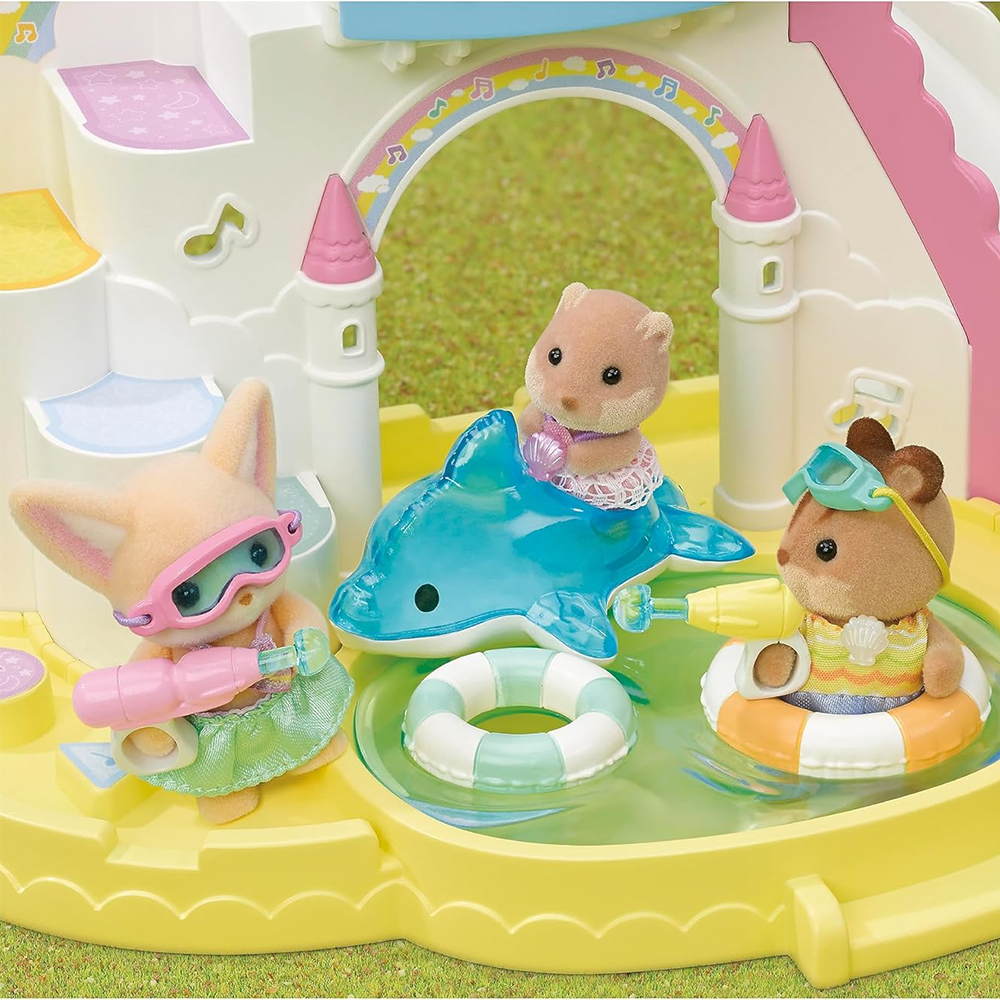 This adorable addition to any playset contains three babies, as well as an inflatable dolphin and pool toys which provide lots of swim time fun. The babies can hold the pool toys and wear the goggles, making them look even more adorable!