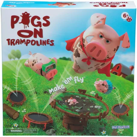 Introducing an exciting new family game that is easy to learn and quick to play. Bounce your pigs off the trampolines to land them on the platform or in the mud pit in the centre to earn mud pies. Master the skill of bouncing pigs off trampolines to land them on the targets. The muddiest pig wins!