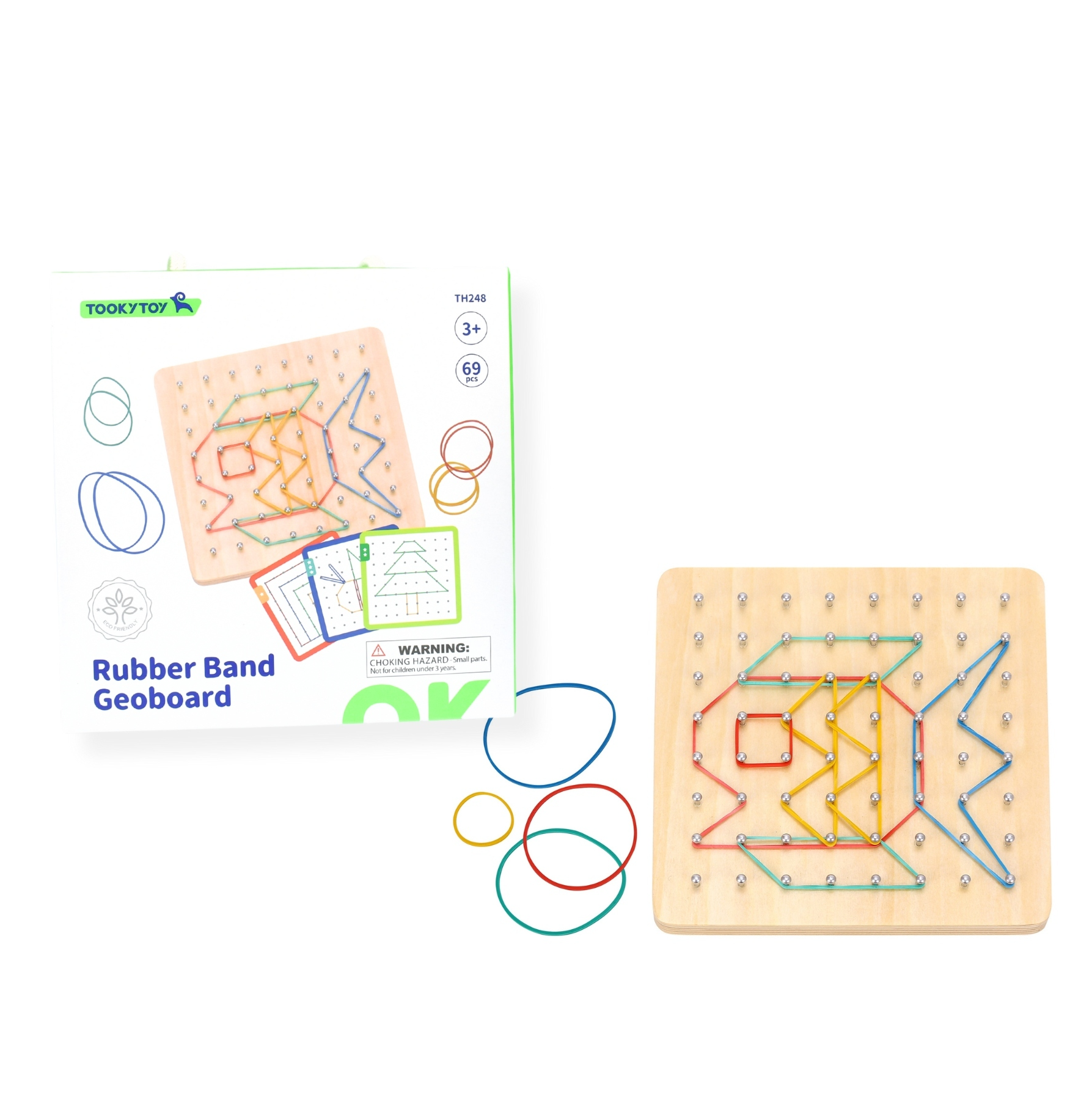 The Tooky Toy Rubber Band Geoboard is an exceptional educational toy that combines creativity and learning. This geoboard set features a beautiful wooden base and comes with 40 pattern cards, offering three levels of challenge. With this geoboard, children can either copy the patterns provided or let their imagination run wild and create their own unique designs using the included coloured rubber bands. The possibilities are endless! Not only does the Rubber Band Geoboard foster creativity, but it also serves as a valuable tool for learning various concepts. Children can practice with 2D shapes, explore fractions, understand degrees, calculate areas, and discover symmetry, among many other skills. This toy encourages hands-on learning and enhances spatial awareness, problem-solving abilities, and mathematical understanding. It is a versatile resource for both individual play and group activities, making it an ideal addition to classroom environments. Let your child's imagination and learning flourish with the Tooky Toy Rubber Band Geoboard, where creativity and education harmoniously come together.
