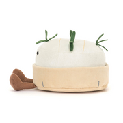 Amuseables Camembert is here to spread cheesy joy. This cream suedette cheese has stitched rind detail, and is topped with sprigs of suedette rosemary. Nestled in its fine cord container with staple detail, this smiling cheese can be taken out of its box for foodie hugs. The perfect gift for any foodie friend.