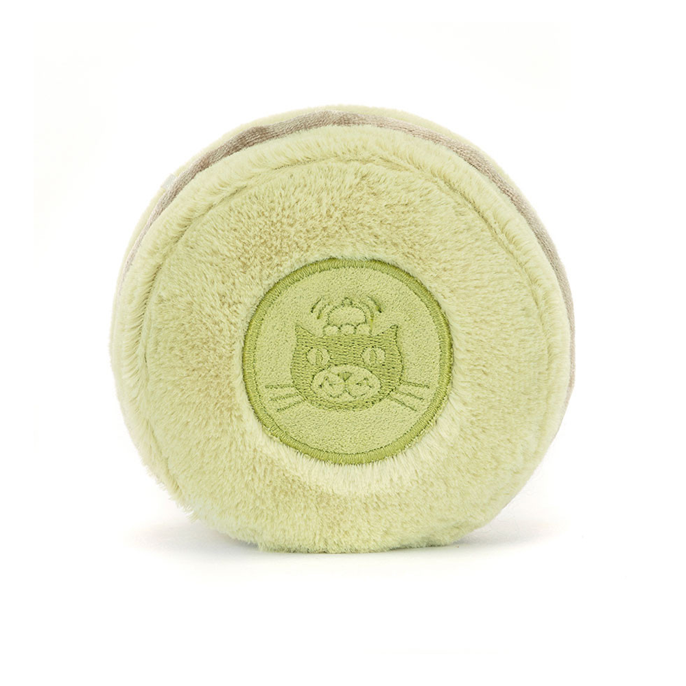 Amuseables Max Macaron is soft and sweet in green fur. With matching cordy feet, a big, stitched smile, and a velvety middle, Max has an embroidered Jellycat logo on the back for a truly luxurious treat!