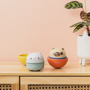 These 2-in-1 pals rocks back and forth, providing hours of entertainment. Or, remove the base, press down on your little pals head and watch it glide across the room on its built-in wheels. There's no limit to what your kid can do with this whimsical critter rocking around their space!