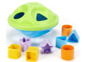 The My First Green Toys Shape Sorter puts an eco-friendly spin on a classic play pattern. Made in the USA from food-safe, 100% recycled plastic milk jugs that save energy and reduce greenhouse gas emissions, the Shape Sorter helps develop recognition of shapes and colors while also encouraging eye-hand coordination, problem solving, and fine and gross motor skill development. The two-part elliptical Shape Sorter and 8 colorful shapes (2 stars, 2 circles, 2 squares, 2 triangles) are the perfect size and weight for little hands. Each piece slides easily into the chute cut-outs on both the top and bottom of the Sorter, which opens with a simple twist, separating the two halves and letting the pieces out again. No BPA, phthalates, PVC or external coatings, and also meets FDA food contact standards. Dishwasher safe for easy cleaning. Packaged with recycled and recyclable materials and printed with soy inks. Suitable from 6 mnths+
