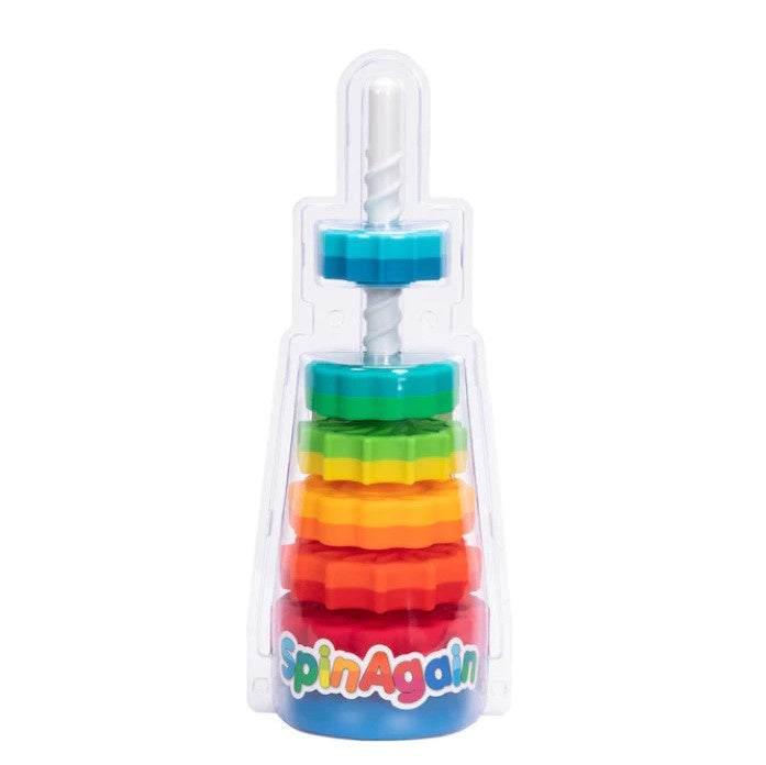 Awww, all the discs are in order; what now? Taking the SpinAgain apart so you can start spinning again might just be the best part! Lift up on the easy-to-release central pole and all the discs spin off the bottom!