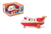 Buckle up and get ready for takeoff with the Wanborns Wooden Airplane with Sound and Light in a vibrant, adventure ready red. With just a press of a button, this delightful airplane springs to life, lighting up and playing cheerful melodies and realistic sounds that make every journey feel truly magical. A trusty wooden pilot is at the helm, ready to guide two eager passengers to their next exciting destination, whether it is a faraway land or just across the living room floor.