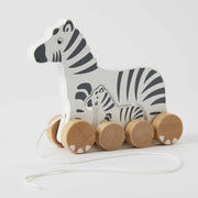 Strengthen little ones’ problem-solving, motor strength, and whole-body coordination with the Pull Along Zebra and Baby. Its cute design features an adorable foal that fits snugly under its parent.