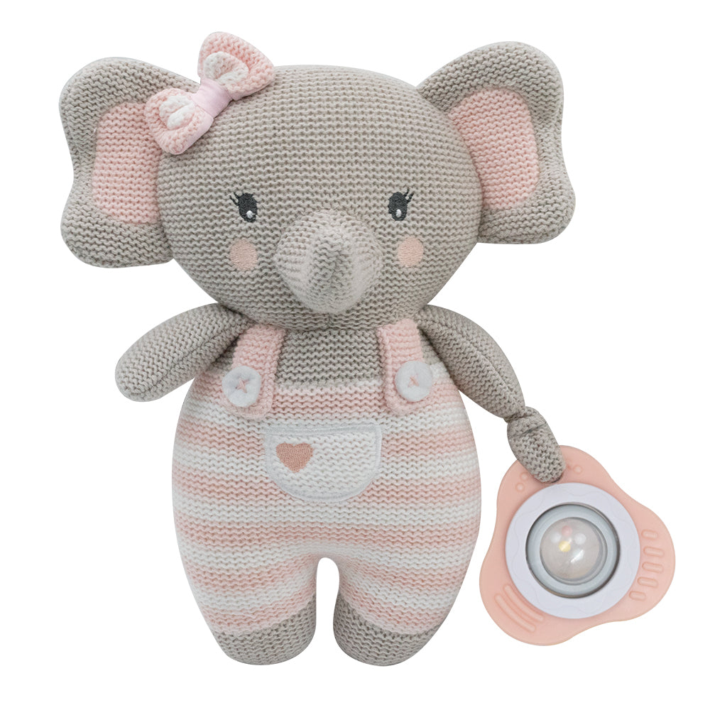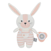 The perfect companion for on the go cuddles and fun. Made from 100% cotton knit and featuring a fun spinning rattle baby will love to pay with, this cute knitted toy will provide lots of entertainment for bub at home or on the go!