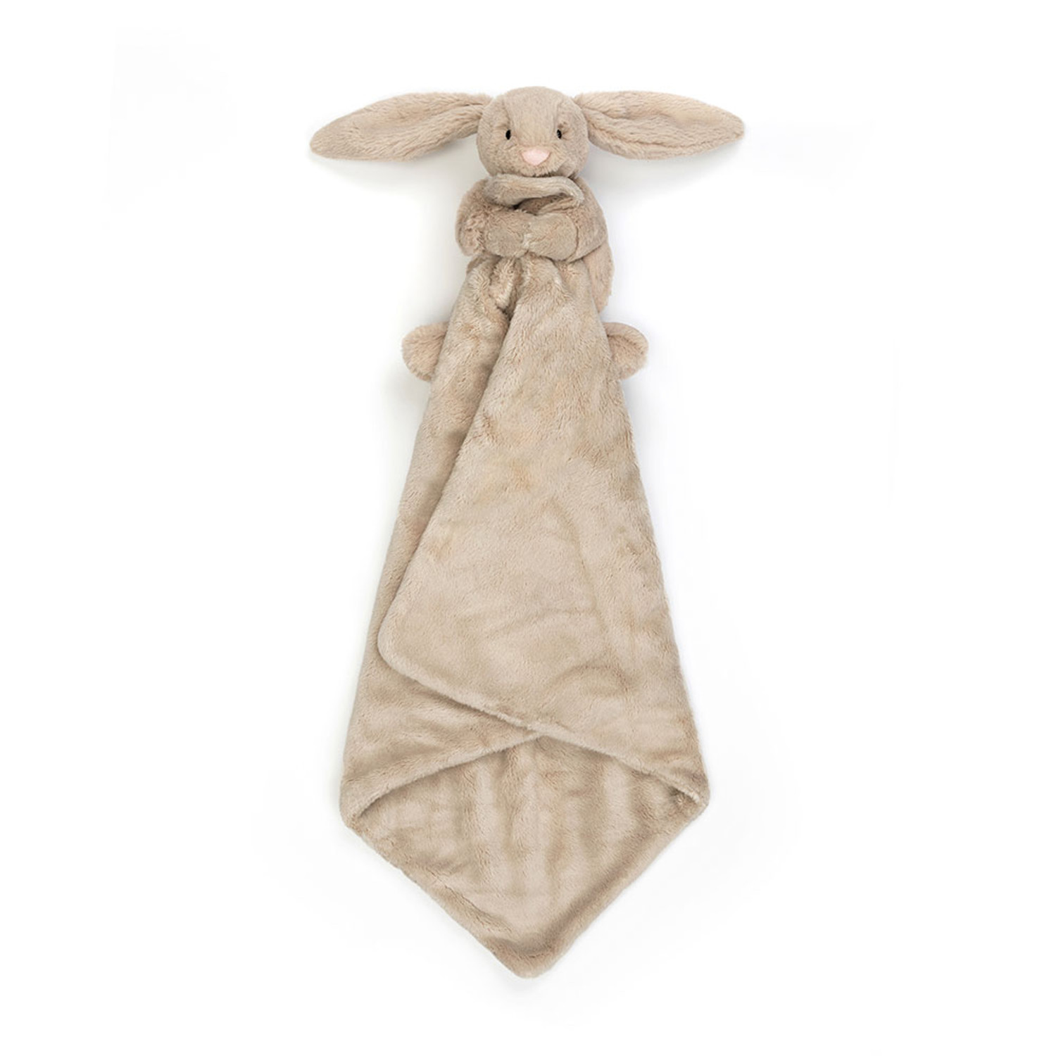 A perfect gift for newborns, the Bashful Beige Bunny Soother is Jellycat's most loved bunny with soft fur, long lopped ears, a beige suedette nose and stitched eye detail holding a square shaped soother, un-stuffed and irresistibly soft to touch. Made from recycled fibres and neatly rolled up and presented with a Baby Jellycat grosgrain ribbon.