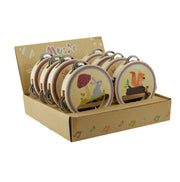 Shaped just like a tambourine, these very cute hand bells come in display of 9 for wholesale,3 of each animal. Very well made and non-toxic paint used. When shaken, the tambourine bells makes a lovely soft sound. Perfect size for little hands. Helps with fine motor skills, hand and eye co-ordination.