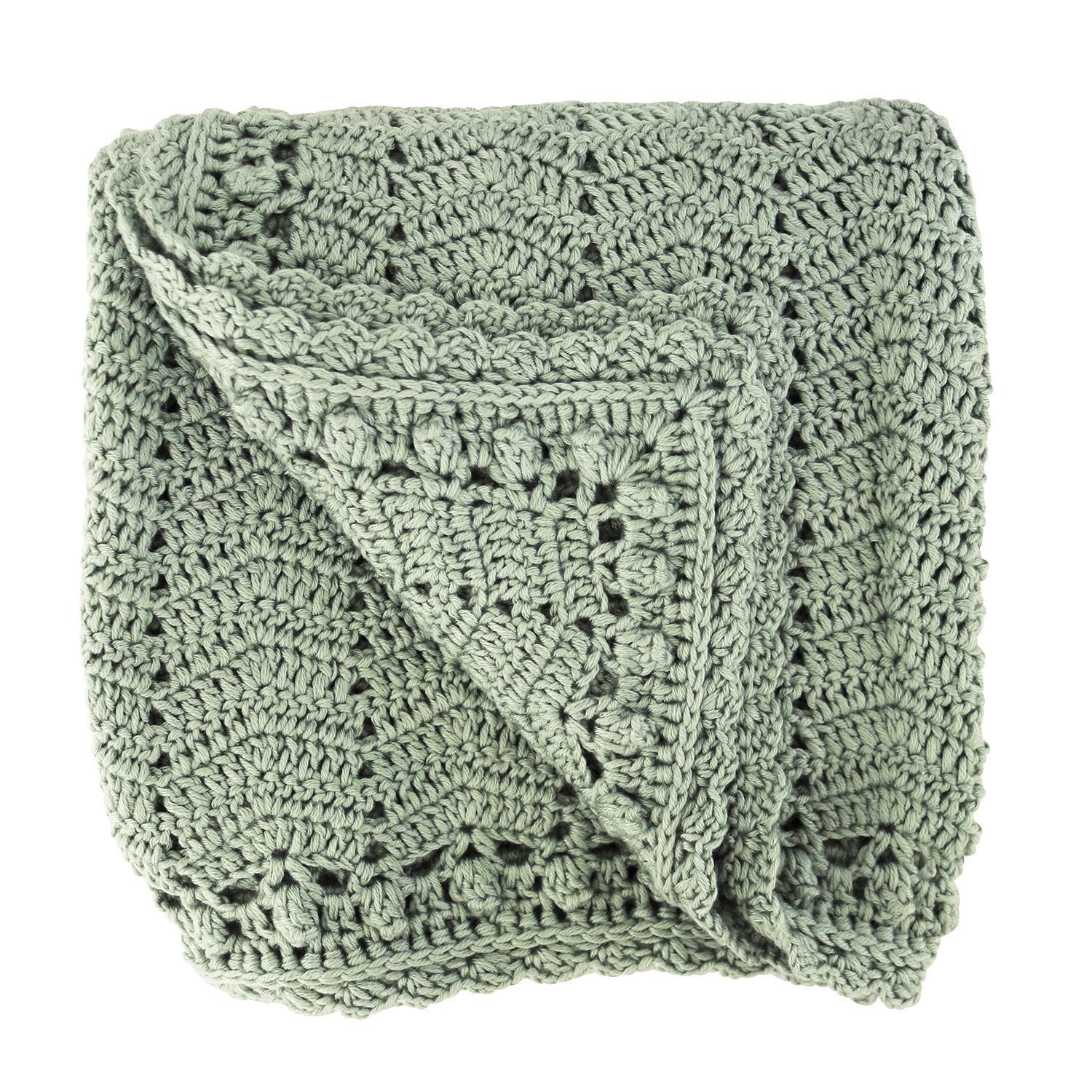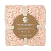 This beautiful baby blanket has been hand crafted by artisans using a technique called crochet. It is a process of creating fabric by interlocking loops of yarn, thread, or strands of other materials using a crochet hook. The name is derived from the French term crochet, meaning 'small hook'.