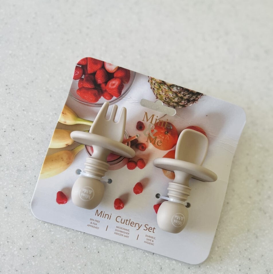 Have you ever noticed your little one wants the spoon or fork you hold? With the Mini & Me Mini Cutlery Set you can give them their own! Allowing this independence when feeding is key to your little ones developement, improving their fine motor skills, having fun and creating a little mess!