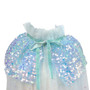 The Disney Frozen Elsa Cape is the perfect accompaniment to a party dress and an essential dress-up accessory to add to their Disney Frozen wardrobe. Featuring a gathered tulle layer on the neckline with a soft blue tulle with blue neck ties. The cape is generously gathered and adorned with a sparkly snowflake pattern. The snowflake cape shimmers and shakes with dance and movement.