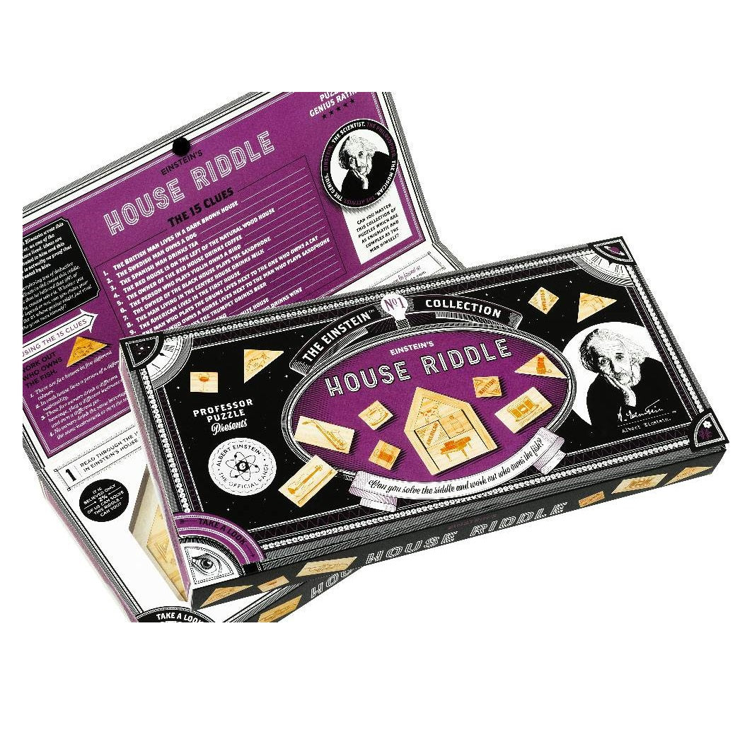 Its a fun but perplexing test of deductive reasoning. The aim is to use the fifteen clues to arrange the pieces of the wooden houses in the right place to work out who owns the fish.