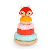 Traditional stacking tower with a modern colourful twist! This wooden stacker comes with a solid base and four round stacking discs, where the child can thread onto the central post. Children can explore mixing up the rings, learning about sizes, color combinations and design. Develops motor skills and hand-eye coordination. Made from high quality wood and non-toxic paint.