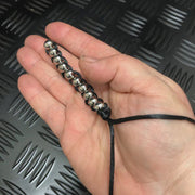 The weighted stainless steel beads roll between fingers beautifully. Many rub the cord also. This fidget is super soft in effect. You can push your fingers in between the beads for a similar sensation to the pea popper.