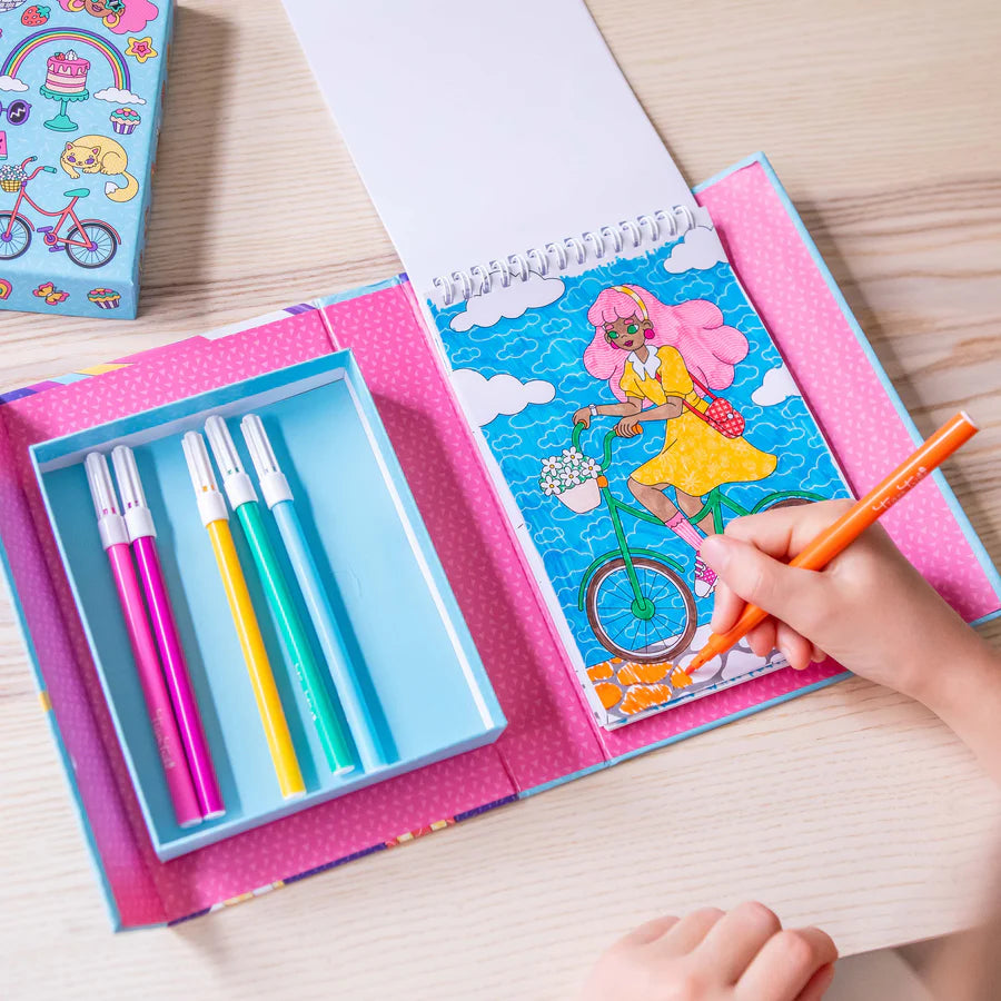 Take one of our classic colouring sets but add a secret surprise on every page and you have this groovy Hidden Pattern Set. With super cute, retro-styled illustrations of roller discos, poodles and skateboarders, kids aged 6+ can flex their creativity and colouring skills to bring the nostalgic, summery fun illustrations to life while revealing hidden patterns including stars, squiggles, flowers and more.