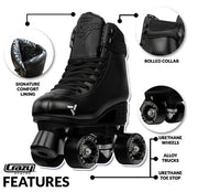 The Glitter POP from Crazy Skates features glitter infused boots, whilst the Jam POP is more understated in all Black with no glitter. These adjustable skates adjust to fit growing feet through the use of a patented internal size adjustment, that gives you 4 sizes in the 1 skate, making these perfect for growing feet. The Glitter POP has been designed to ''stand out from the crowd' - a classic retro design with a bright glitter rolled collar make these perfect for developing skaters who want the ability to skate either indoors or out, while wearing comfortable fitting skates and making a real fashion statement or roll stealth style in the tricked out all black Jam POP!