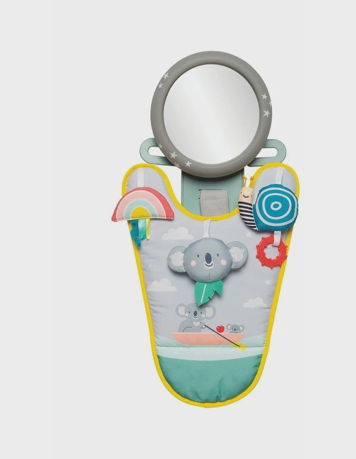 Car toy combo '“ combination of soft activity toys and a rear-view mirror for fun, development and safety in one! For Easier Drive and Easier Development! Details A unique combination of high quality car mirror and a colorful car toy for rear facing babies Baby-safe curved mirror for easy and convenient adult view of baby inside the car Easy to attach and adjust for baby's play Keeps both baby and parent calm and happy while in car Rattling soft activity toys - crinkling rainbow, rattling koala and a chime bell snail with a baby teether