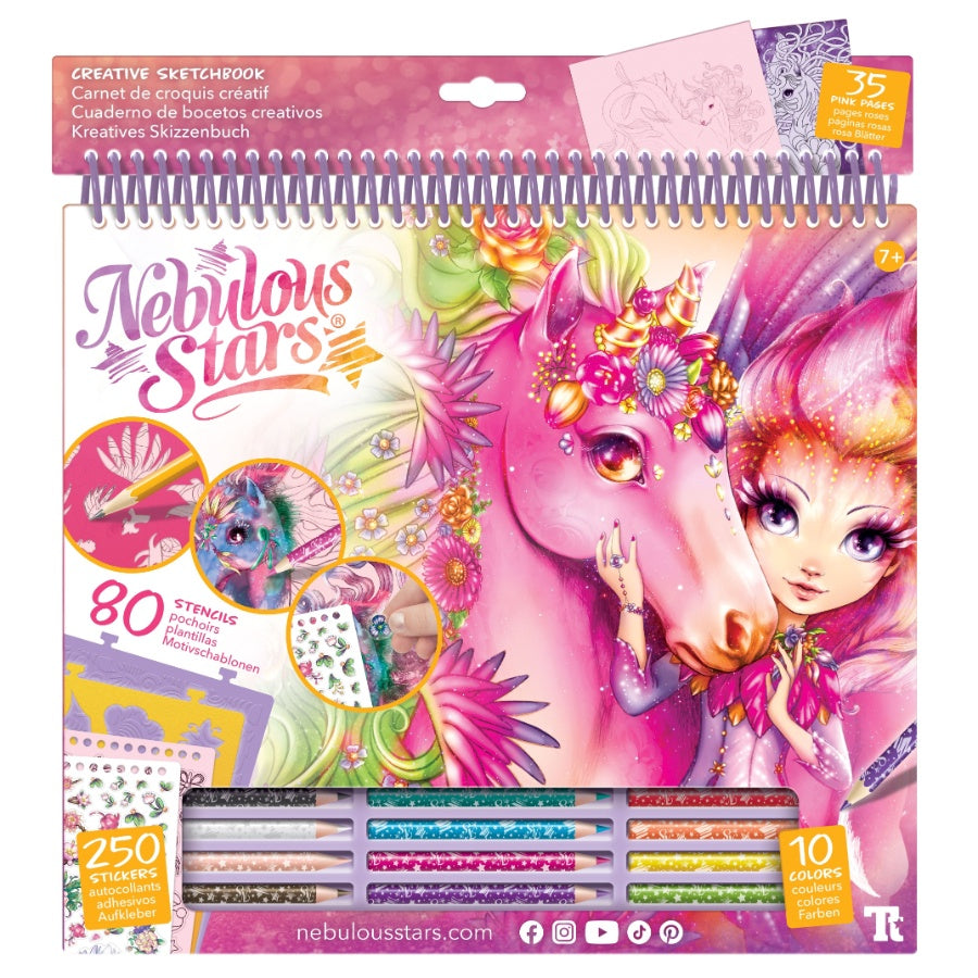 Create mystical and stunning fantasy horses worthy of flying in the magical nebula skies! Use an array of stickers, stencils and techniques to design Petulia and Hazelia's horses.