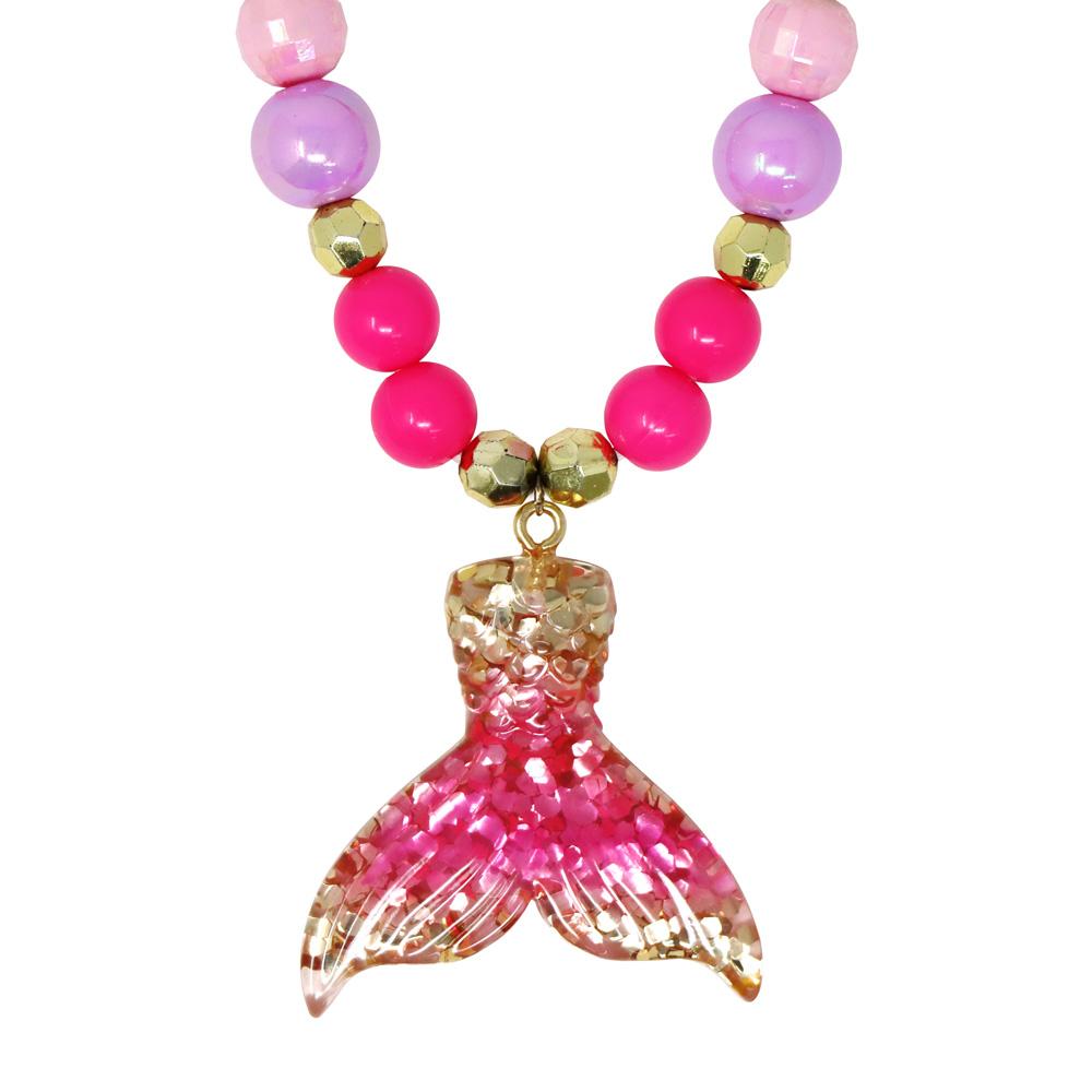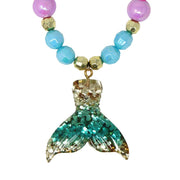 Rainbow Mermaid Necklace. Make Waves Mermaid Necklace is perfect for the mermaid loving girl comprised of iridescent beads and a glitzy resin mermaid tail pendant.