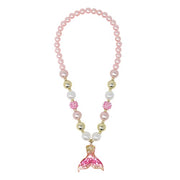 Pink Poppy's Mermaid Tail Necklace is perfect for the mermaid loving girl comprised of lustrous pearl beads and a glitzy resin mermaid tail pendant.