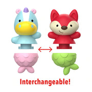 Switch it up at tub time with our cute mix & match mermaid bath toys set. Designed to twist apart, the mermaid tails are interchangeable for extra fun! Each two-piece bath toy is also easy to clean and floats in water. Soak up the fun with our full line of ZOO® baby and toddler bath toys.