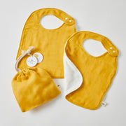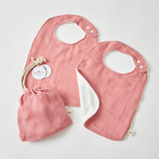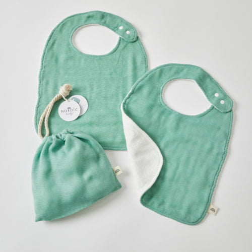 These 100% natural bibs are made with Cotton Muslin on the front and absorbent Bamboo Towelling on the back. Featuring adjustable snaps for easy use, these large, ultra-soft bibs are comfortable for little ones to wear whilst keeping their clothes clean against spills and dribbles! Both bibs come in a matching bag for the perfect storage solution and great for using when you'™re on the go.