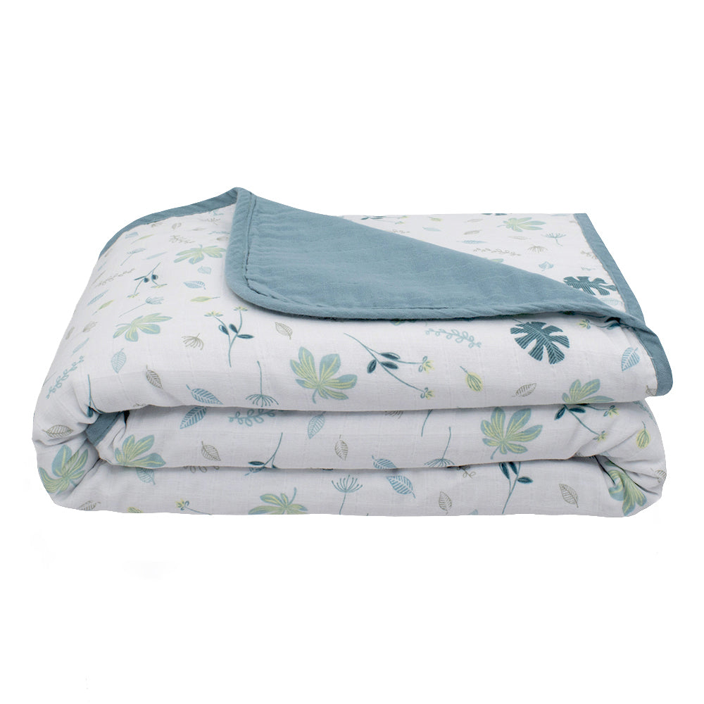This luxurious organic baby blanket will ensure your little one always has the cosiest and cutest of outings. Crafted from 6 layers of soft and silky 100% organic cotton muslin and featuring a reversible design, this lightweight, breathable blanket is perfect all year round. Match back with other items in the Living Textiles Banana Leaf Collection.