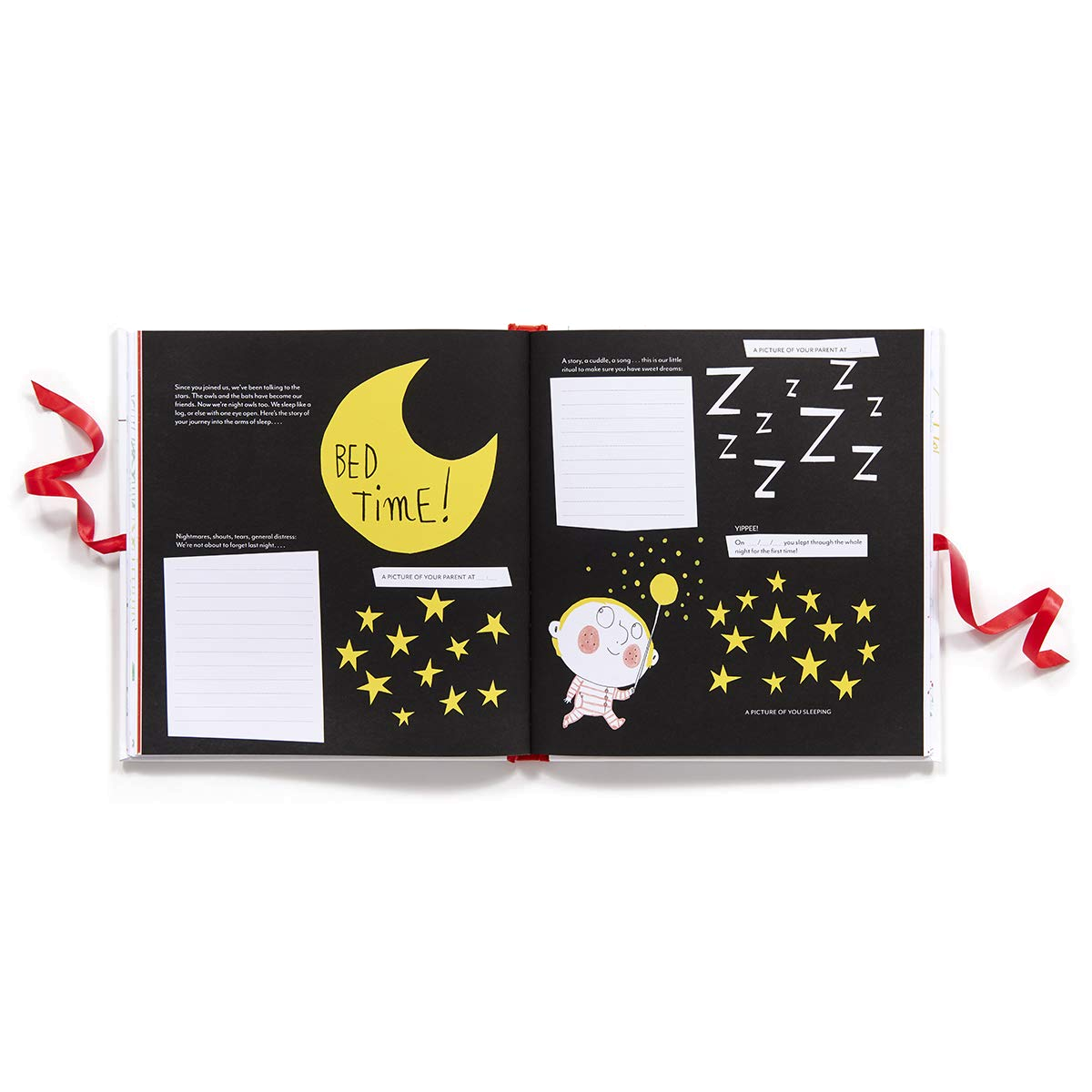 Whimsical prompts encourage parents to jot down the details of their baby’s emerging personality, likes and dislikes, and memorable firsts, as well as their own reflections on new parenthood.