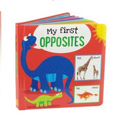 - My First OPPOSITES Board Book helps foster image and word recognition, as well as speaking and motor skills.