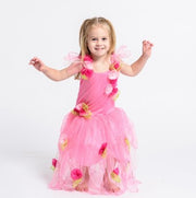 This divine fairy Dress is adorned in Handmade organza flowers and has sparkly spot glitter petals on the skirt. A lovely combination of colours and fabrics.