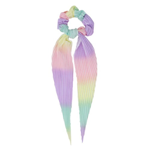 Wear your hair up with this scarf style Pastel Hair Scrunchie by Pink Poppy. Get the look of long scarf ribbon attached to a pretty pastel scrunchie with pleated texture.