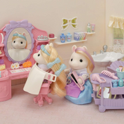 Meet Serafina Manely, the Pony Hair Stylist! This Pony's Hair Stylist Set features a beautician's cart packed with hair accessories, plus a pony mother figure.