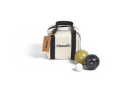 Bocce by Planet Finska has eight big and beautiful full-sized (100mm) balls crafted from superior polished resin. That's the same material used for premium snooker or billiard balls. Their look and feel is superb. Each set includes two sets of four balls in smart black and olive as well as a 50mm white polished resin palIino. The four bocce balls of each colour comprise 2 sets of two balls with a unique engraved pattern so the game can cater for two or four players.