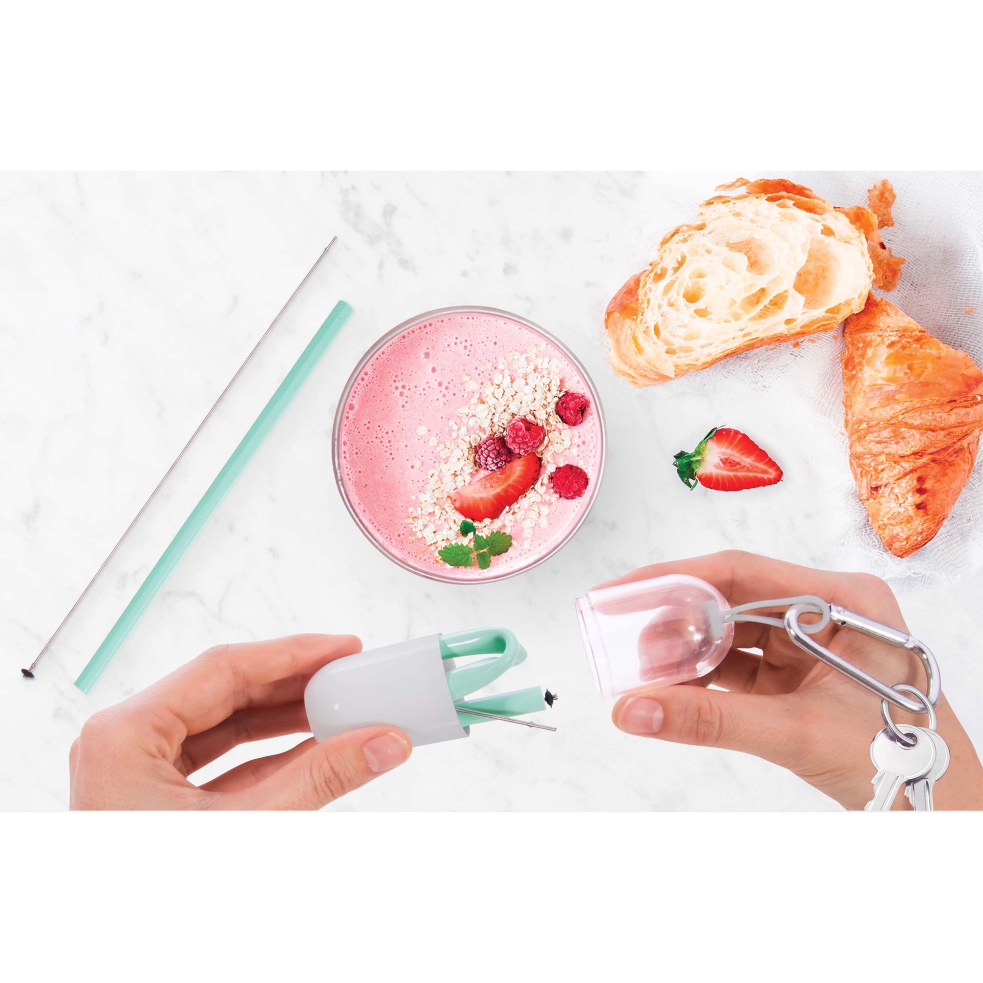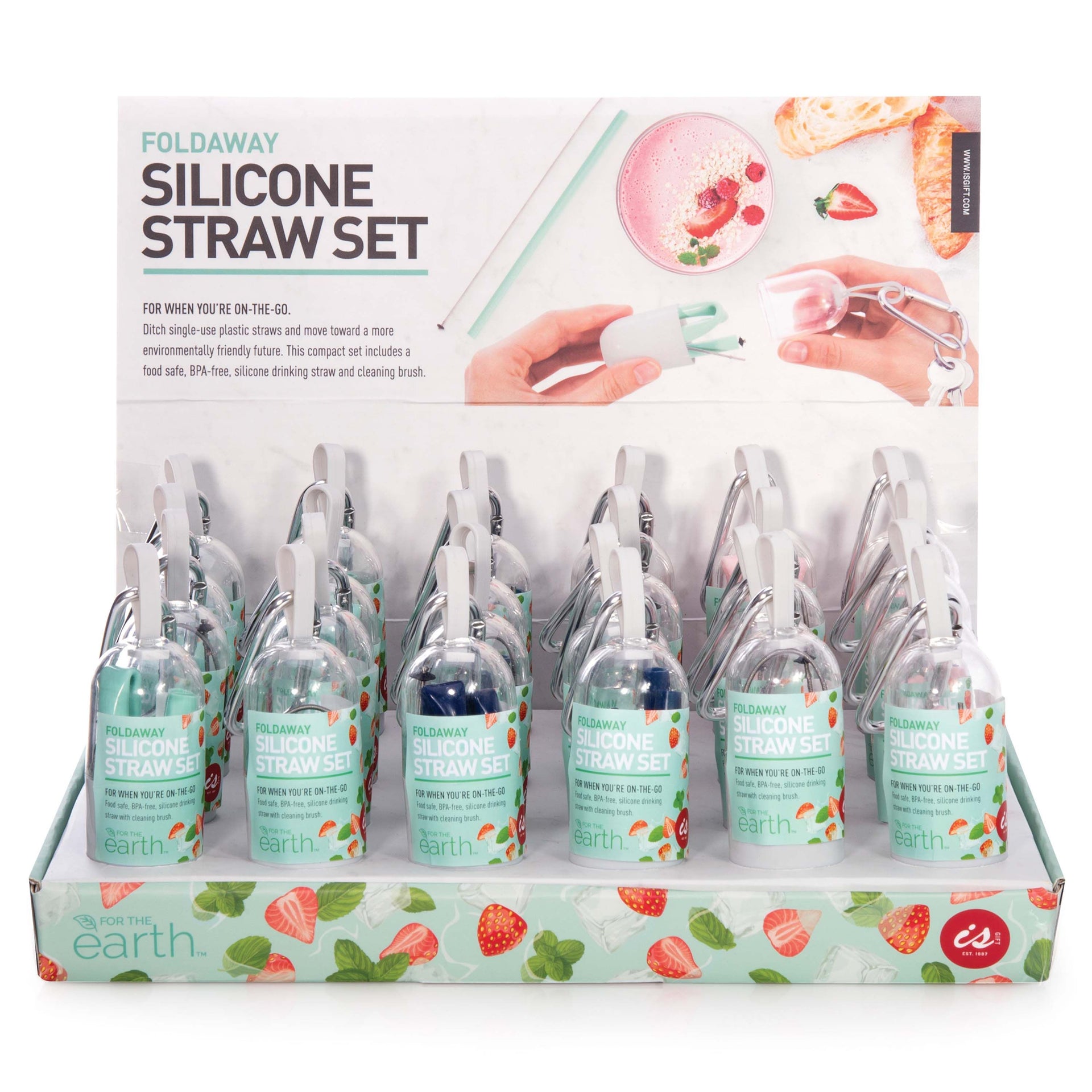Food safe, BPA-free, silicone drinking straw with cleaning brush.
